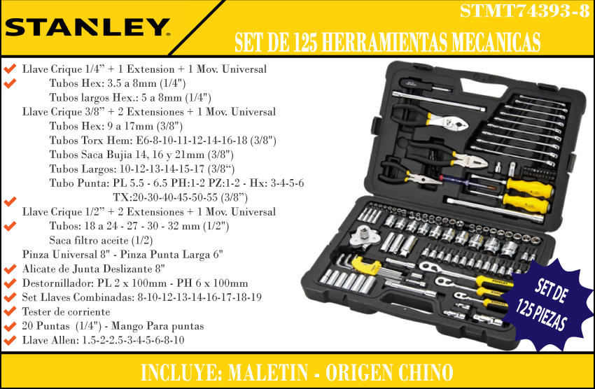 Stanley Set 125 Piezas 3 Mandos Caja Plast Herram. Mecan. Stmt74393-840