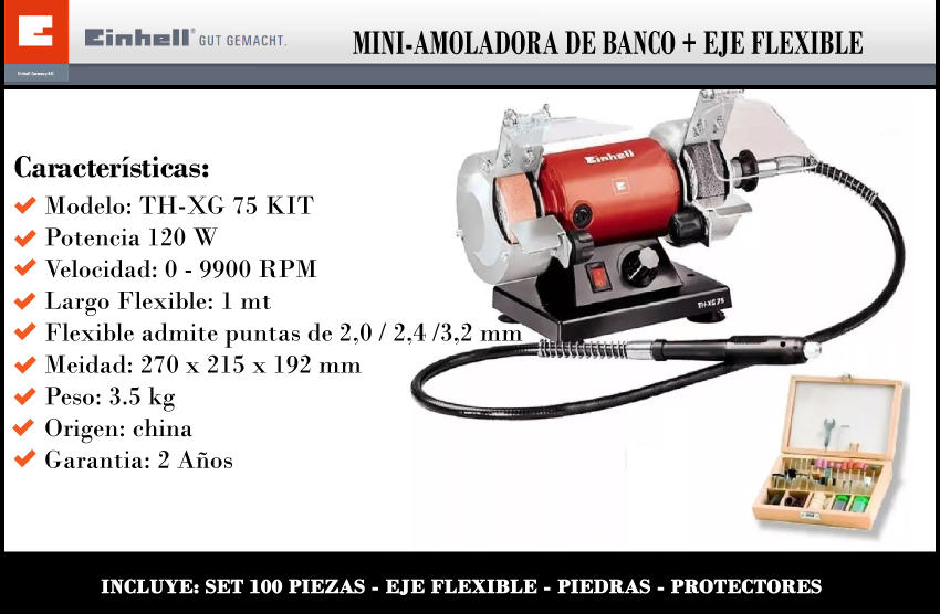 Einhell Amoladora De Banco 120 Watts Multifunsion Th-xg 75kit
