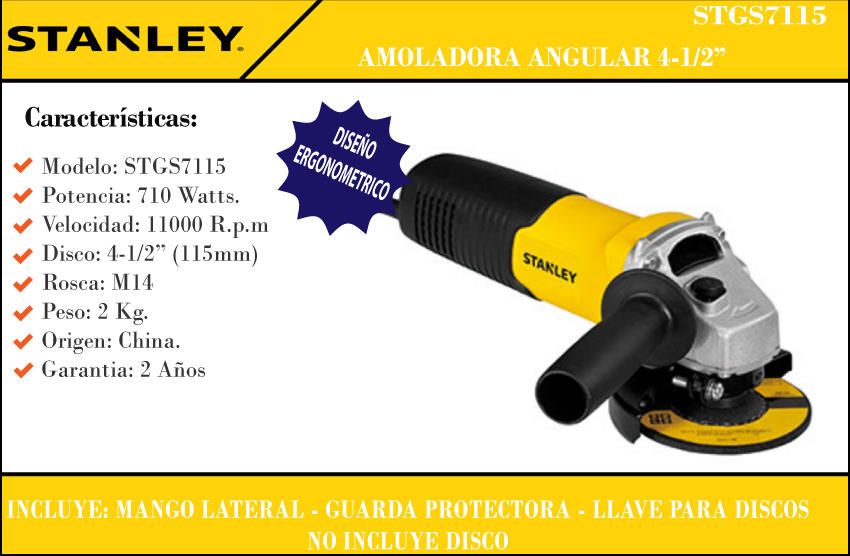 Stanley - Amoladora 41/2" 710w 11000rpm Interrup. Desl. Stgs7115