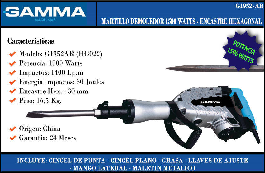 Gamma Martillo Demoledor Hex 30 C/red 1500w 30j Ex-hg022