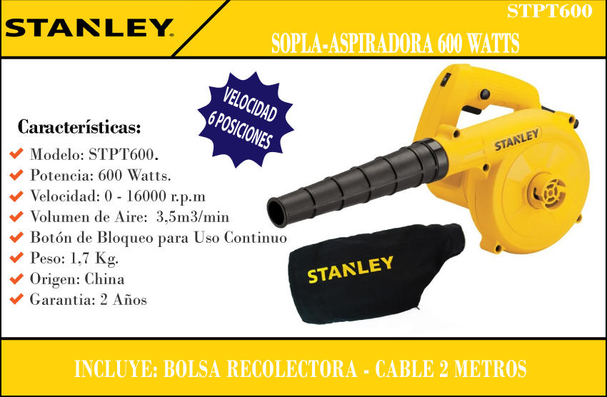 Stanley - Sopla Aspirador 600w V. Var. 16000rpm