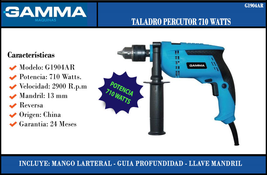Gamma Taladro 13 Mm 710w Percutor Caja