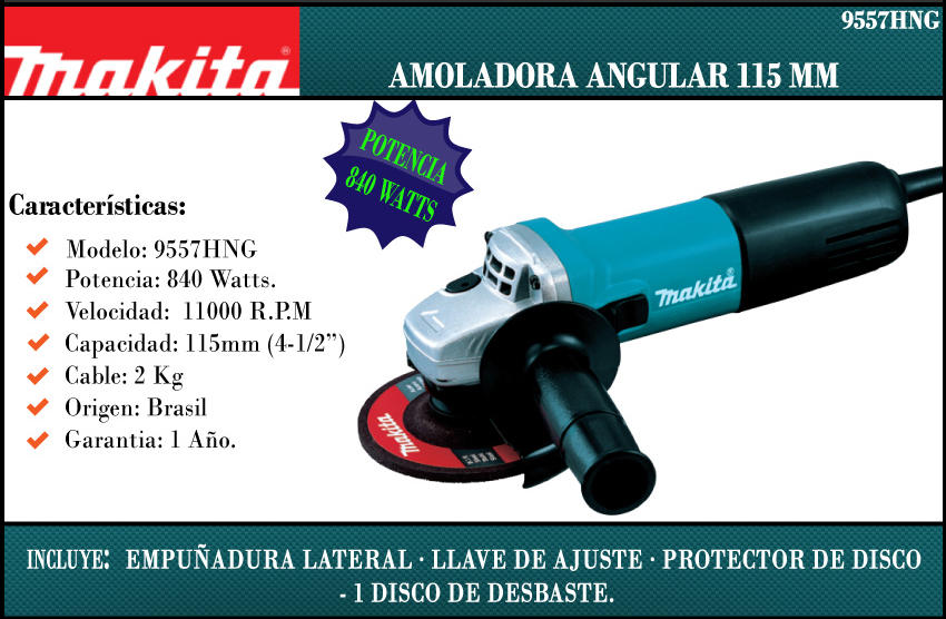 Makita Amoladora 115mm 840w Int. Lateral (9557hng)
