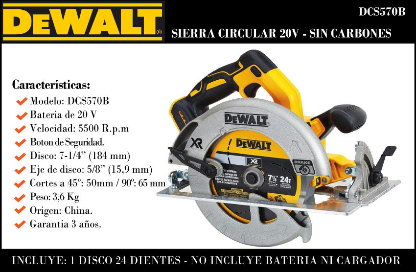Dewalt Sierra Circular 7-1/4" 20v Brushless (sin Bateria - Sin Cargador)