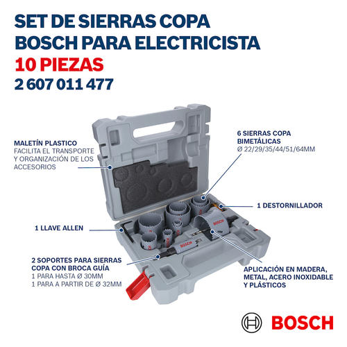 Bosch Set 10 Piezas Sierras Copa + Adaptador + Maletin