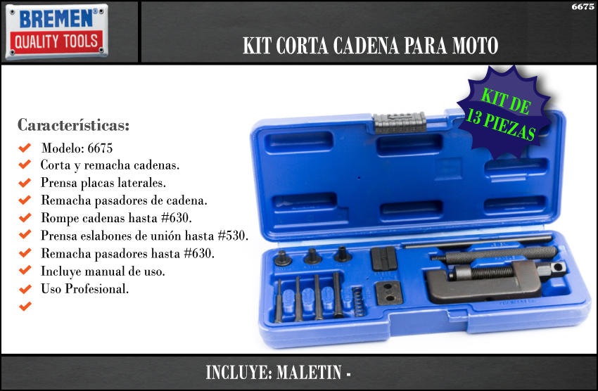 Bremen Corta Cadena Moto + Kit 13 Piezas