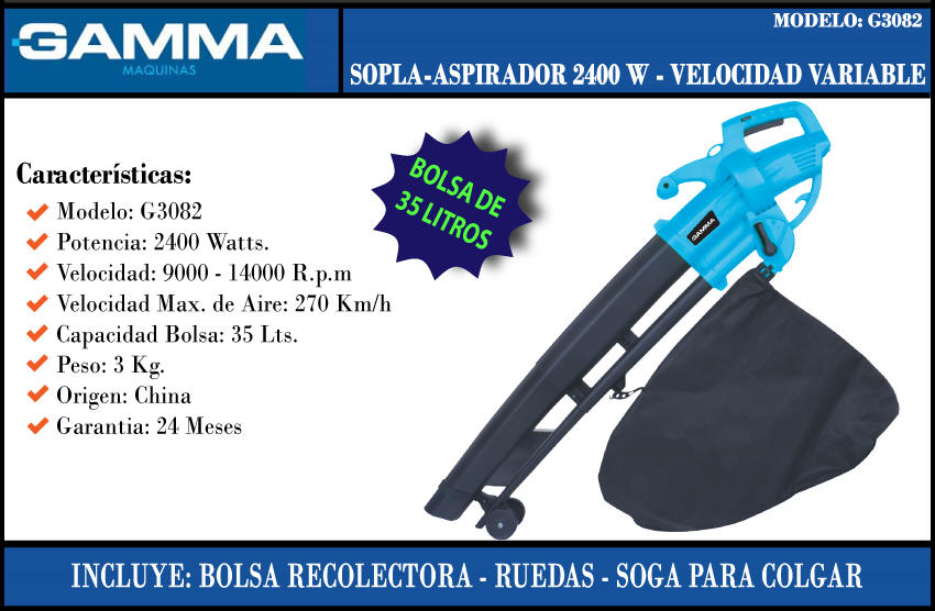 Gamma Sopla Aspirador Electrico 2400w Picado De Hojas