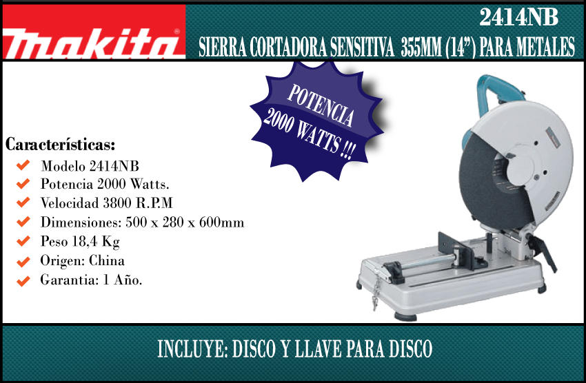 Makita Sierra Cortadora Sensitiva 355 Mm 2000w + Disco