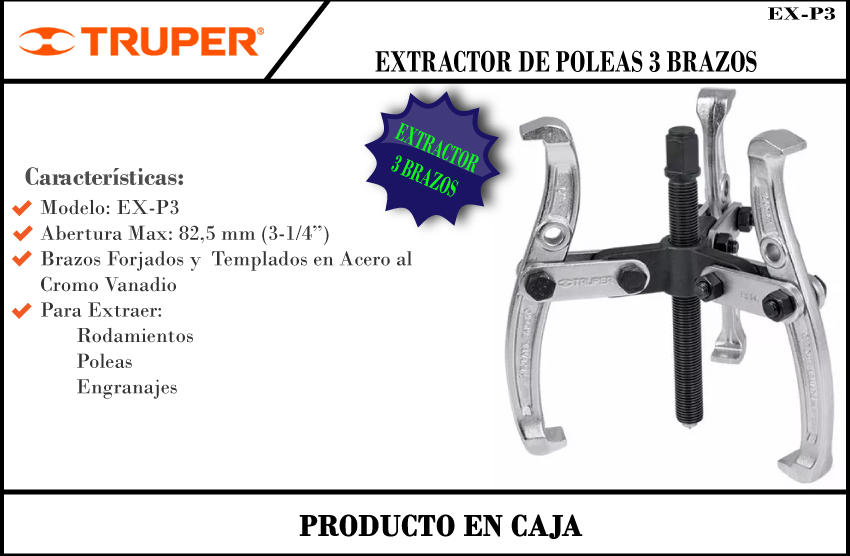 Truper Extractor Polea Mecanico 3 Garr. 82,5 Mm Mod.14500