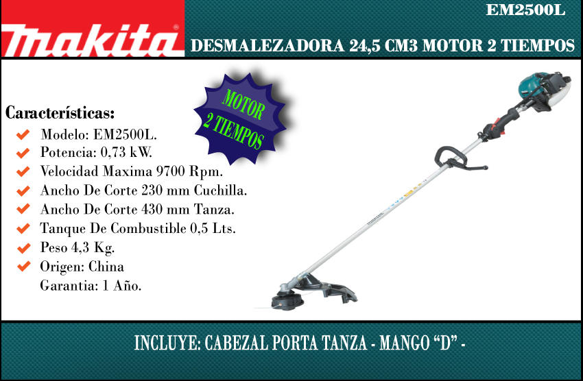 Makita Desmalezadora 24.5cc 7000rpm 2tpos 1hp
