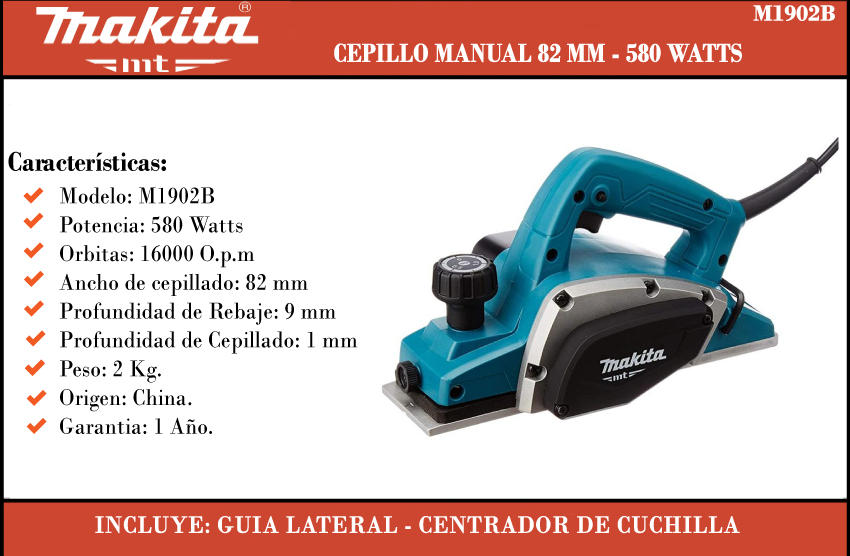 Makita Cepillo Mt 580w 82 X 2 Mm C/guia Lateral
