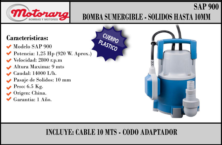 Motorarg Bomba Sumergible Portatil Sap 100 220v 1.25hp Agua Limpia