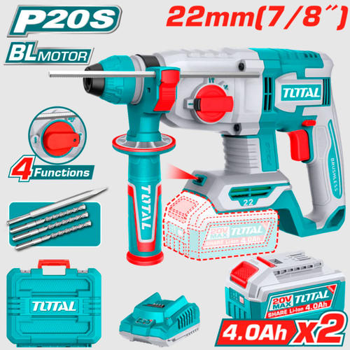 Total Martillo Rotativo 20v Sds Plus (2 Bateria 4ah - Cargador - Maletin)