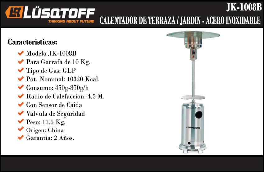 Lusqtoff Calefactor Sombrilla C/ Barra De Apoyo Ac.inox P/ Garrafa 10320 Kcal