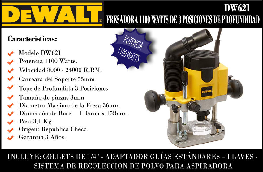 Dewalt Fresadora 8000-24000rpm 1100w Dw621-ar