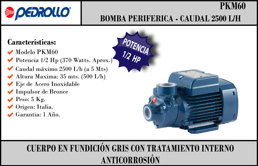 Pedrollo Bomba Periferica Pkm60 220v 0.5hp