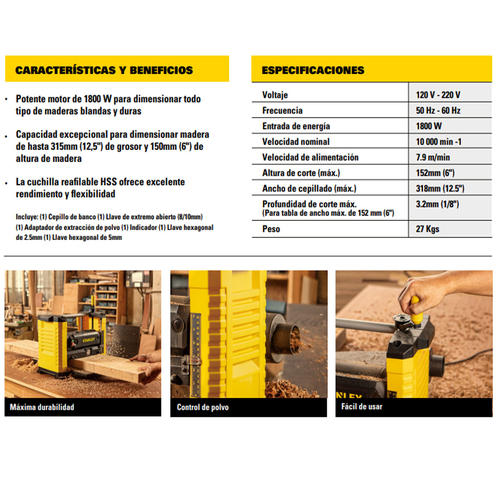 • Ancho De Cepillado (máx.): 318mm (12.5")