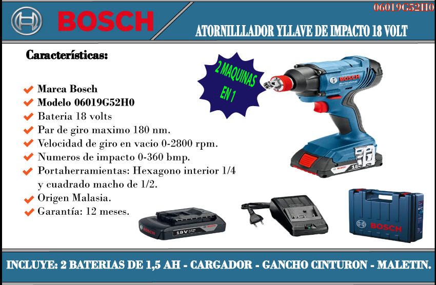 Bosch Llave De Impacto 18v 1/2 Y Atornillador 1/4 Gdx 180-l (2 Bateiras - Cargador)