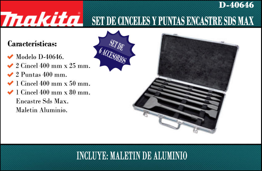 Makita Set 6 Cinceles Y Puntas Sds Max Con Maletin
