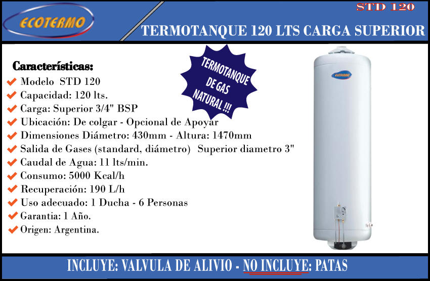 Termotanque Ecotermo 120 Lt Gas Natural Carga Superior