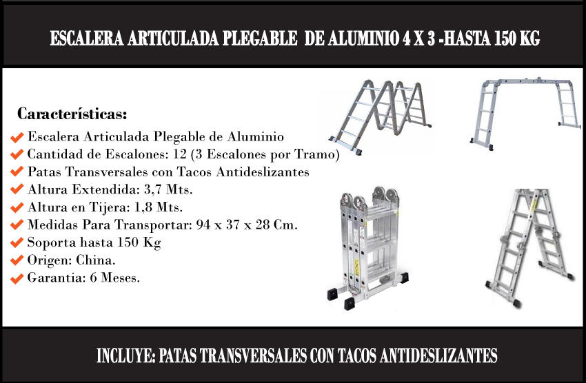 Lusqtoff Escalera Articulada Aluminio 4x3 Escalones
