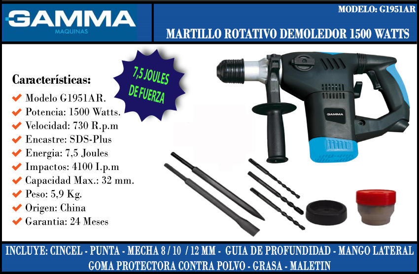 Gamma Martillo Rotativo Plus Hg021 1500w 7,5j Ex Hg021