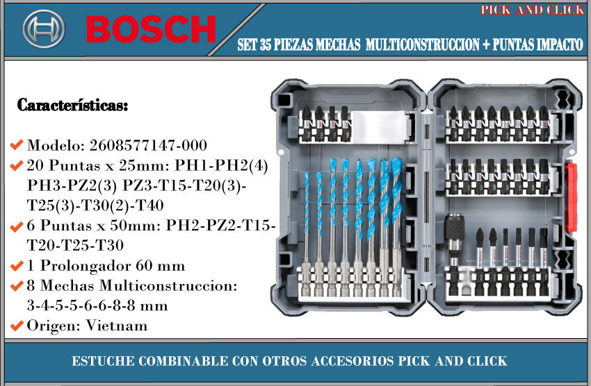 Bosch Set 35 Pick And Click Puntas - Mechas Multiconstruccion - Adaptador - Estuche