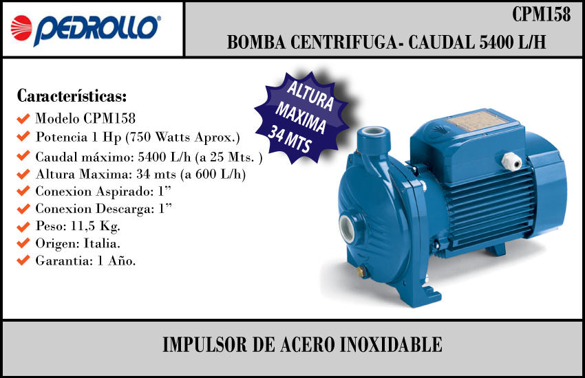 Pedrollo Bomba Centrifuga Cpm158 220v 1hp