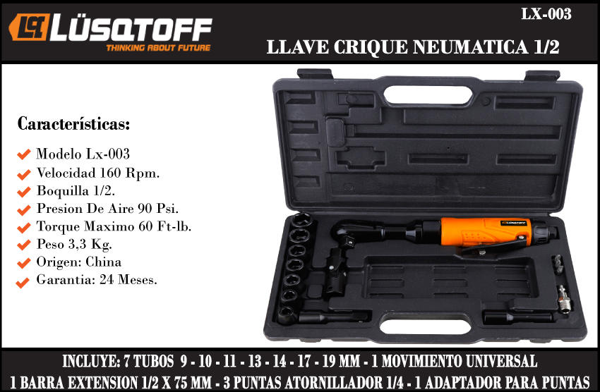 Lusqtoff Llave Crique Neumatica 1/2 + Accesorios