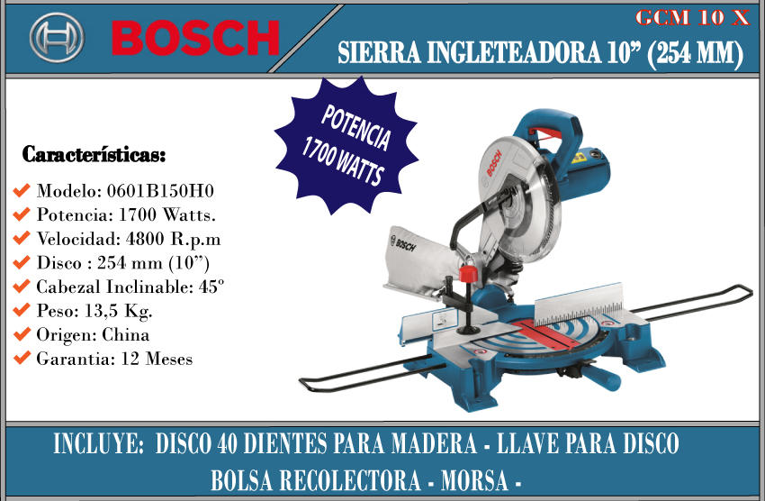Bosch Ingletadora Gcm10x 1700w 10" Con Discodisco