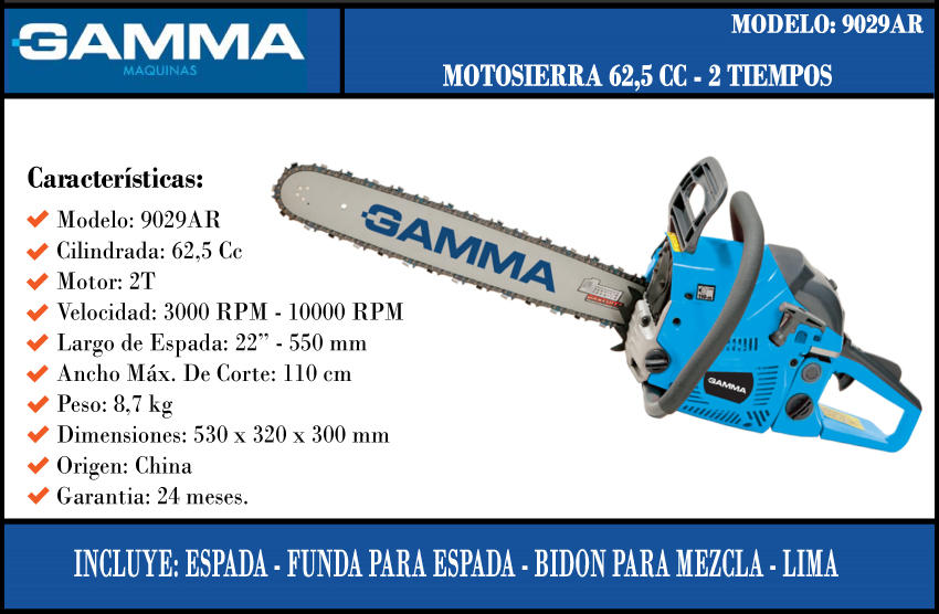Gamma Motosierra 62cc 22'' 2 Timpos Ex9023
