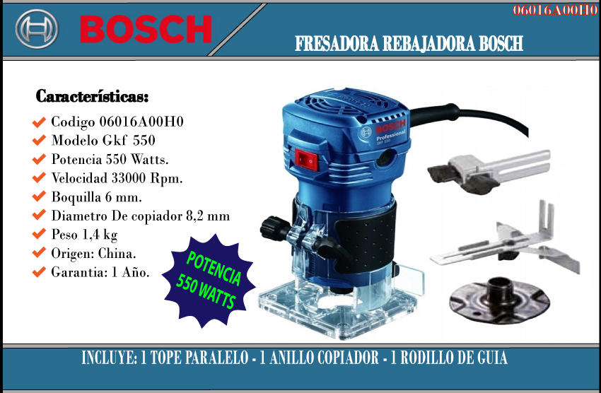 Bosch Fresadora 550 Watts 6 Mm - 1/4 Gkf 550