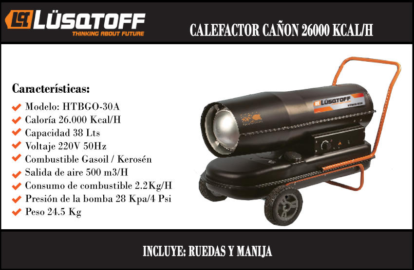 Lusqtoff Calefactor 26000 Kcal Potencia: 30 Kw.