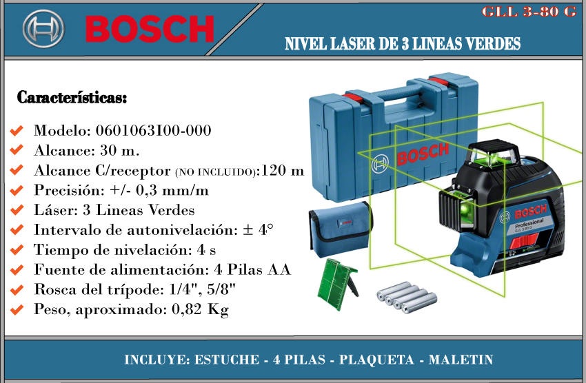 Bosch Nivel Laser De Linea Gll 3-80 G 30/120 Mts + Maletin