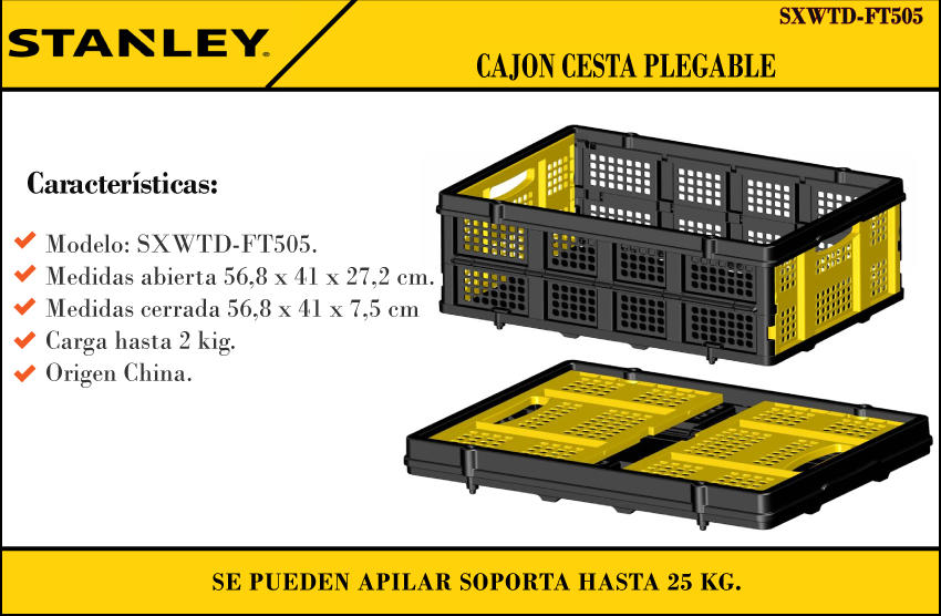 Stanley Canasto Plegable Para Transportar Hasta 25 Kg