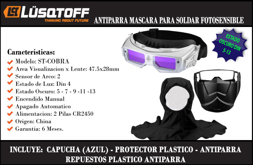 Lusqtoff Antiparra Mascara P/ Soldar Fotosensible Cobra