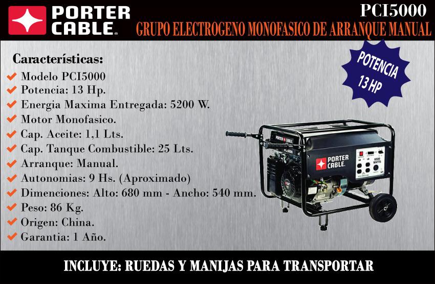 Porter Cable Grupo Electrogeno Arranque Manual 5200w C/ruedas