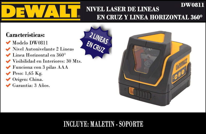 Dewalt Nivel Laser En Cruz 2 Lineas 30 Mts De 360° (dw0811)