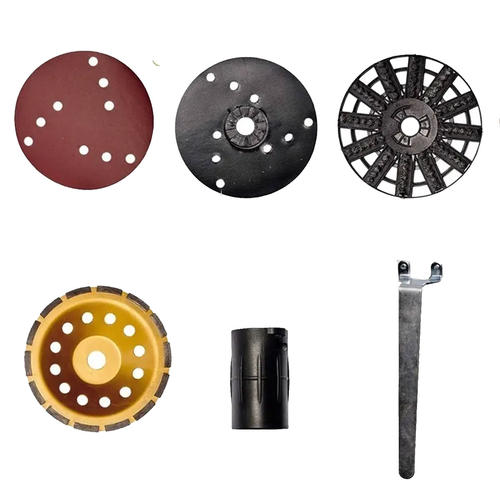 • Incluye: Disco De Copa De Diamante Para Hormigón / Granito / Solera / Adhesivo Para Baldosas - Cepillos De Acero Para Restos De Papel Tapiz Y Hormigón - 6 Discos De Lija Ø 180 Mm (2 P60 / 2 P80 / 2 * P120)