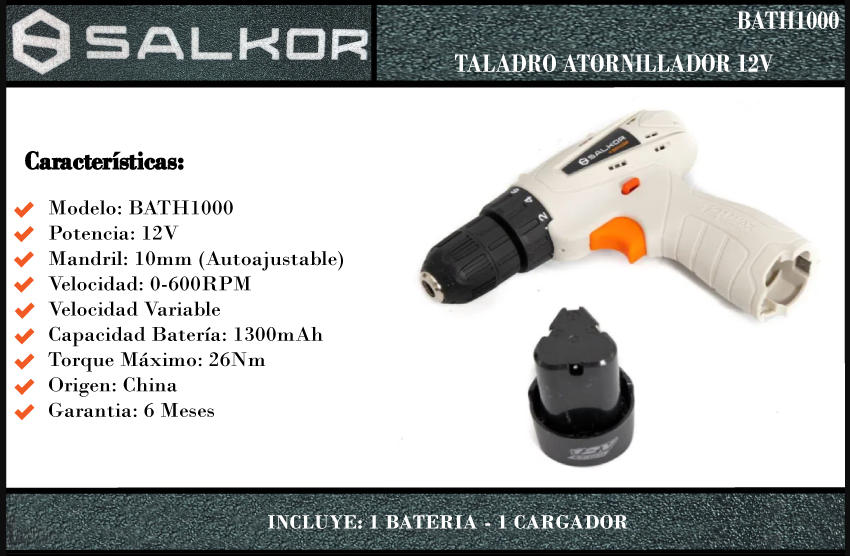 Salkor Atornillador Taladro 10 Mm 12v (hogar)