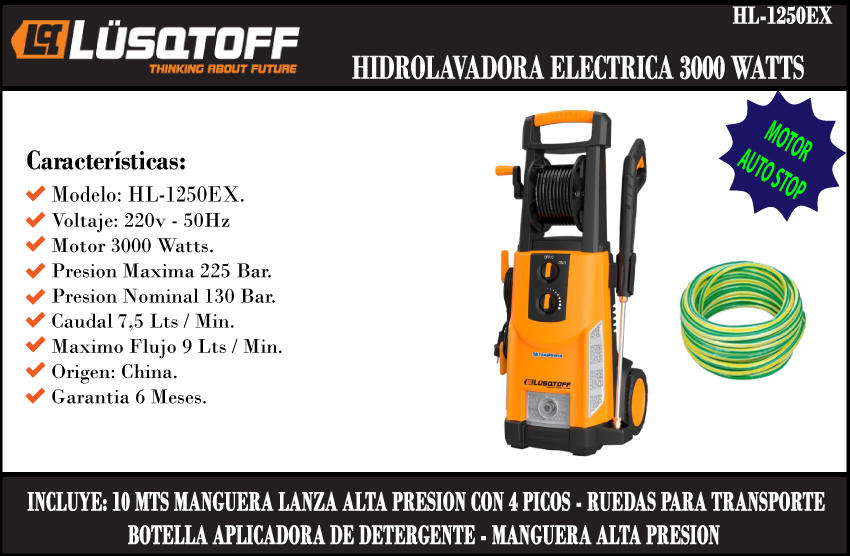 Lusqtoff Hidrolavadora 130 Bar / 225 Bar Max. 3000w + Picos
