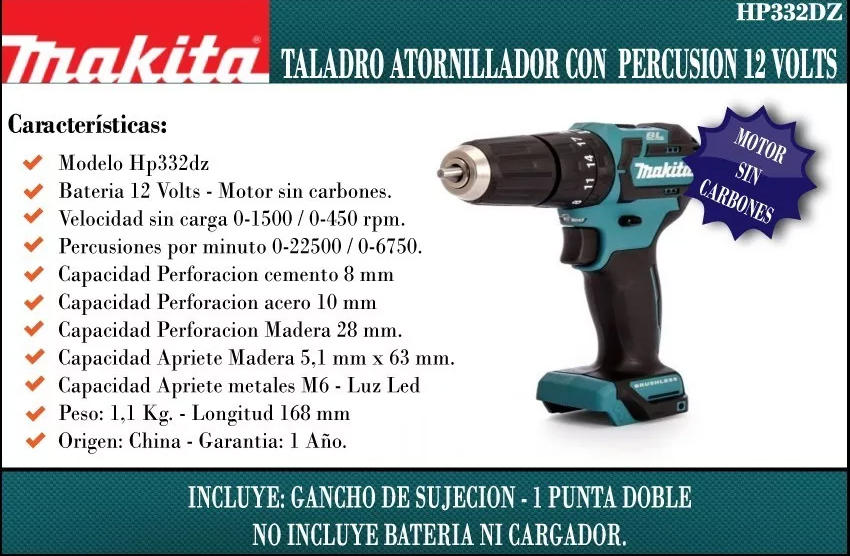 Makita Atornillador Taladro Percutor 10mm 12v (sin Bateria - Sin Cargador)