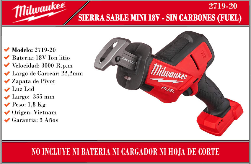 Milwaukee Sierra Sable 18 V Sin Carbones (fuel) Sin Bateria Y Sin Cargador
