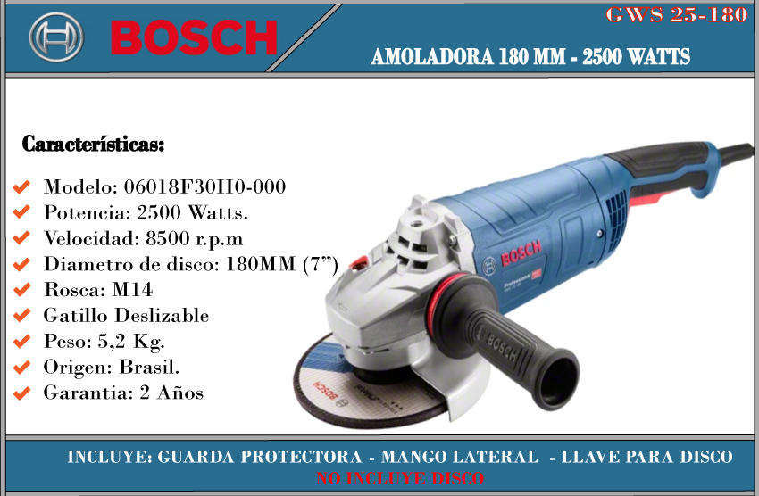 Bosch Amoladora 180 Mm 7" Gws 25-180 - 2500 W - Vulcano