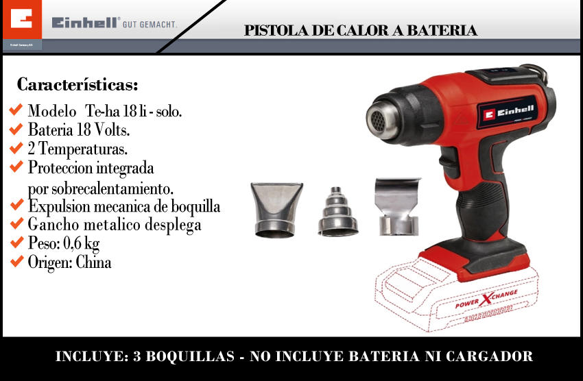 Einhell Pistola De Calor 18v Te-ha18 Sin Bateria Sin Cargador