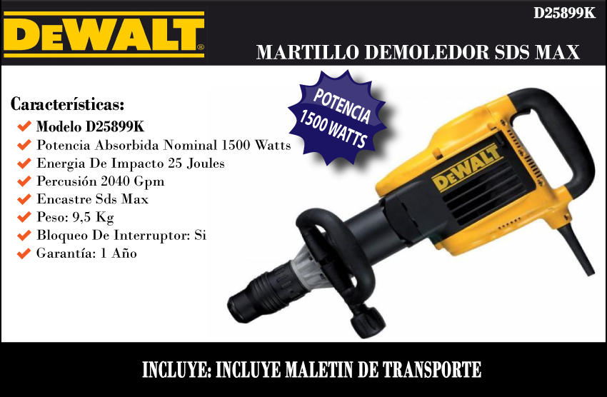 Dewalt Martillo Demoledor Max 1500w 25j D25899k