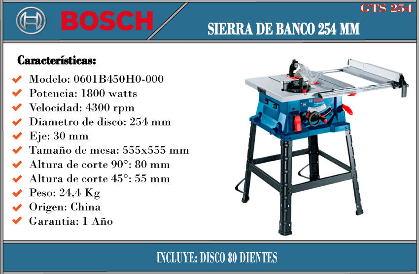 Bosch Sierra De Banco Gts 254 1800w 10" - 254 Mm