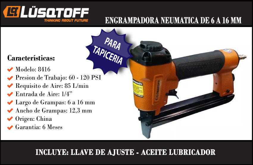 Lusqtoff Engrampadora Tapicera 6 A 16mm Neumatica Para Grampas De 12,3 Mm