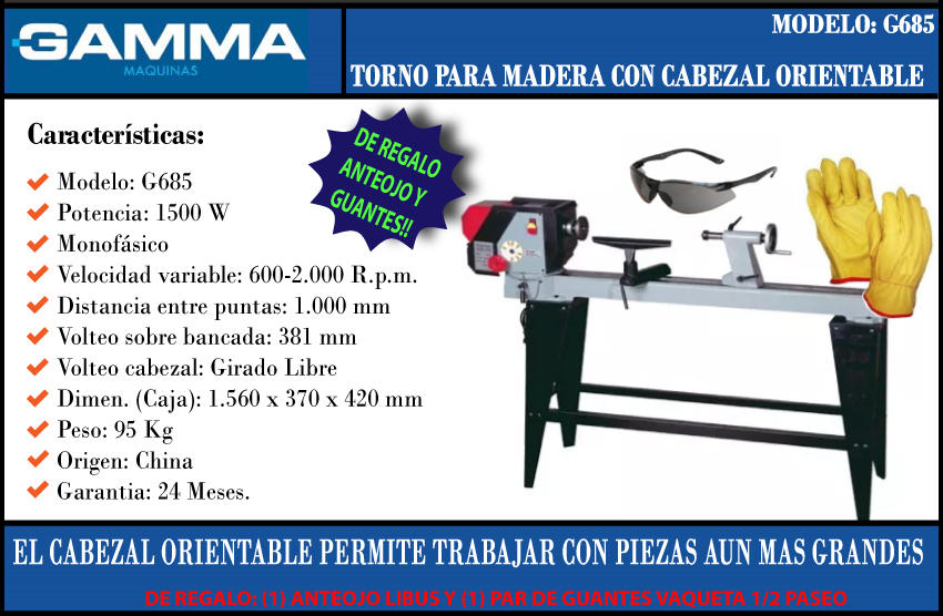 Gamma Torno Para Madera Con Cabezal Orientable 1500w1000mm E/ptas