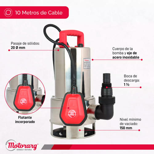 Motorarg Bomba Sumergible Portatil 1 Hp Sminox 100 Agua Sucia